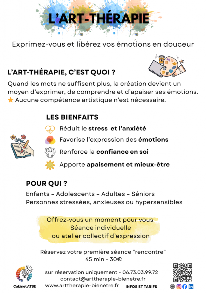Une introduction douce à l’art-thérapie, idéale pour débuter votre voyage intérieur, explorer vos émotions et retrouver un espace de liberté.